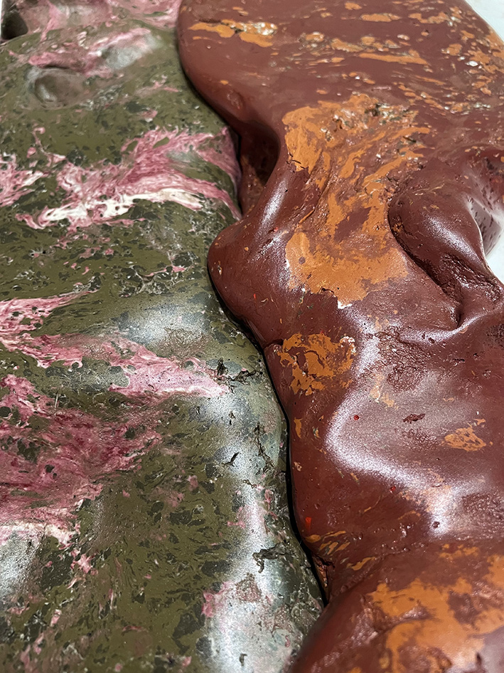 In den historischen Räumen von Schloss Damtschach begegnen sich drei künstlerische Positionen, die den menschlichen Körper, geologische Prozesse und materielle Transformationen in den Fokus rücken. Die Ausstellung vereint Werke von Matthias Winkler, Mima Schwahn und Felizitas Moroder, deren skulpturale und performative Arbeiten in einen vielschichtigen Dialog mit der mittelalterlichen Architektur des Ausstellungsorts treten. Matthias Winkler bewegt sich zwischen bildender Kunst, Mode und Performance. Seine organisch anmutenden Skulpturen und textilen Objekte sind geprägt von einer Ästhetik des „Unheimlichen“ – deformierte, verletzliche Formen, die den menschlichen Körper neu denken und Normen bewusst hinterfragen. Mit einem Hintergrund in Malerei und Modedesign verbindet er Handwerk mit konzeptueller Tiefe. Seine Werke erzählen von Körperlichkeit, Identität und Transformation. Mima Schwahn lässt sich von der Sprache der Geologie inspirieren. Aus Stuckmarmor – einem traditionsreichen Material aus Gips, Pigmenten und Leim – schafft sie Objekte, die an Gesteinsschichten, Sedimente und fossile Spuren erinnern. Ihre Arbeiten verhandeln die Beziehung zwischen Mensch und Erdgeschichte, zwischen Naturprozessen und kultureller Interpretation. In Schloss Damtschach antworten ihre Skulpturen auf die historische Bausubstanz mit archaischer Ruhe und materieller Präsenz. Felizitas Moroder arbeitet mit Fragmenten, mit Stein und Raum. Ihre reduzierte, zugleich poetische Formensprache untersucht Gegensätze: Ruhe und Bewegung, Konstruktion und Intuition, Verletzlichkeit und Widerstand. Durch die Re-Kontextualisierung gefundener Materialien entstehen stille, kraftvolle Skulpturen, die in Resonanz mit ihrer Umgebung treten. Ihre Arbeiten verorten sich im Spannungsfeld zwischen dem Momenthaften und dem Monumentalen. Die Ausstellung eröffnet einen sinnlichen Erfahrungsraum, in dem sich drei zeitgenössische künstlerische Perspektiven mit der Geschichte und Atmosphäre von Schloss Damtschach verweben. Zwischen Körper, Zeit und Materie entstehen neue Verbindungen, Spuren und Erzählungen. Abbildungen Fotokollage oben: 1. Mima Schwahn, Säule I (Support), 2024, 34 x 25 cm, Stuckmarmor, Foto: Miriam Schwahn 2. Matthias Winkler, Tandler Gloves Black, 23/24, Recycled Working Gloves, Recycled Leather, Austrian Organic Felt and Natural Rubber, Wooden Nails, Recycled Metal Tips. Foto: Dennis Eichmann 3. Felizitas Moroder, w/o, 2025, 42,5 x 22 x 2 cm, rosso verona marmor, Foto: Felizitas Moroder