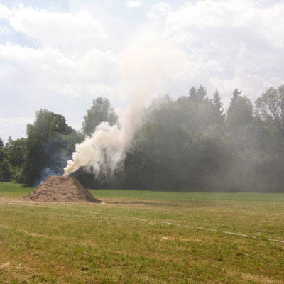 Im Juni 2012 werden AO& in Damtschach / Wernberg Kohlemeiler anlegen, um in einem mehrwöchigen Prozess aus Buchenholz Holzkohle entstehen zu lassen. 30 Raummeter gespaltenes Holz wird zu 2 Rundmeilern aufgeschlichtet, mit reisig und stroh bedeckt und in Erde, Sand und Lösch luftdicht gehüllt. Angefeuert wird das Holz zum glosen gebracht und die luftzufuhr kontrolliert niedrig gehalten. Der Verkohlungsvorgang dauert, je nach Grösse des Meilers mehrere Tage oder Wochen und muss rund um die Uhr betreut werden. Unterstützt werden die Künstler von der Familie Hochecker aus Michelbach in Niederösterreich, die eine der letzten 4 verbliebenen professionellen Kohlstätten betreiben. Vorbereitend werden AO& im Betrieb der Familie Hochecker mitarbeiten.