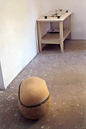 Gustav Böhm Ulla Laitinen > Kurt Mayr Roland Schütz Nikos Arvanitis Magnus Arnason Klaus Pobitzer Richard Schütz Adam Wiener Jagosh Kalezich Zenita Komad Verena Schlögel Franz Graf Helmut Eisendle Claudia Plank Hans Werner Poschauko Guillaume Bijl SC Masc: calling khwan Rasch ist ein schon seit Jahrhunderten in Kulturen auf der ganzen Welt verwendetes Material: Eine Art Moorgras, das geflochten wird und zu Behältern, Schuhen, Matten oder Kopfbedeckungen verarbeitet wird. "Es saugt die Nässe auf, ohne zu brechen, und es wärmt", erklärt Richard Schütz, "aber das knowhow, damit zu arbeiten, ist hier schon fast in Vergessenheit geraten". Für "calling khwan" haben die Künstler Rasch-Produkte aus der ganzen Welt zusammengetragen - aus der Mongolei, aus Indochina; Imkereibehälter und Kopfbedeckungen -und präsentieren sie in neuen Zusammenhängen. Sie haben die Technik weiterentwickelt und stellen selbst Skulpturen aus Rasch her, in denen die traditionellen Verwendungsformen des Materials thematisch nachklingen. Kurt Mayr, geb. 1958 in Ostertnieting /OÖ, SC Masc, lebt in Wien |