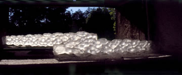 Gustav Böhm Ulla Laitinen Kurt Mayr Roland Schütz Nikos Arvanitis Magnus Arnason Klaus Pobitzer > Richard Schütz Adam Wiener Jagosh Kalezich Zenita Komad Verena Schlögel Franz Graf Helmut Eisendle Claudia Plank Hans Werner Poschauko Guillaume Bijl Eieiei Die Installation befindet sich in einem geschützten Raum, der fast wie eine Höhle wirkt, und ist von außen nur durch einen Spalt in der Wand zu betrachten: Ein menschengroßes Ei. "Man muss ein Ei vorsichtig behandeln", sagt Richard Schütz, dementsprechend intim und geborgen steht der Brutkasten auch in seiner Höhle. Richard Schütz, geb. 1965 in Linz, Studium an der Angewandten (Produktgestaltung Keramik), SC Masc, lebt in Wien |