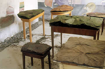 Gustav Böhm > Ulla Laitinen Kurt Mayr Roland Schütz Nikos Arvanitis Magnus Arnason Klaus Pobitzer Richard Schütz Adam Wiener Jagosh Kalezich Zenita Komad Verena Schlögel Franz Graf Helmut Eisendle Claudia Plank Hans Werner Poschauko Guillaume Bijl Have you seen this child Als die Künstlerin mit ihrem dreijährigen Kind in Norditalien war, fielen ihr die fotokopierten Flugzettel mit den Fotos vermisster Kinder auf, die überall verteilt wurden "Ich hatte Angst vor einem Kidnapping", erzählt sie. Jetzt, in Damtschach, nahe der italienischen Grenze, hat sie sich an damals wieder erinnert. In die Eierschalen, die sie für ihre Installation verwendet, sind Kinderfotograflen gedruckt -von sich selbst als Kind, ihren eigenen und fremden Kindern. Technisch unterstützt wurde sie dabei von Marja-Leena Hukkanen, einer Fotografin, die auch mit Kaurismäki gearbeitet hat. Ohne Titel Das Material, sagt die Künstlerin, sei das wichtigste bei diesen Objekten -Blätter der Pflanze Giant Tatar, die sie in Finnland gesammelt und getrocknet hat. Die Tische, mit denen die Blätter bedeckt sind, stammen vor Ort aus Damtschach. Die Blätter haben verschiedene Farben, je nachdem, zu welcher Jahreszeit sie gesammelt wurden, und sie werden sich auch hier im Lauf der nächsten Wochen noch verändern: Durch die Luftfeuchtigkeit werden sie sich wellen, vom Wind heruntergeweht werden, "nach zwei Monaten wird nichts mehr übrigbleiben", sagt Laitinen. "Alles ist organisch, und deswegen ist es auch vergänglich." Ulla Laitinen, geb. 1956 in Finnland, Studium der Kunst und Pädagogik, lebt in Helsinki |
